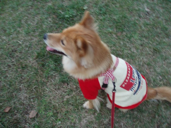 今日は北風が冷たかったので、裏が起毛してるトレーナーを着せました。