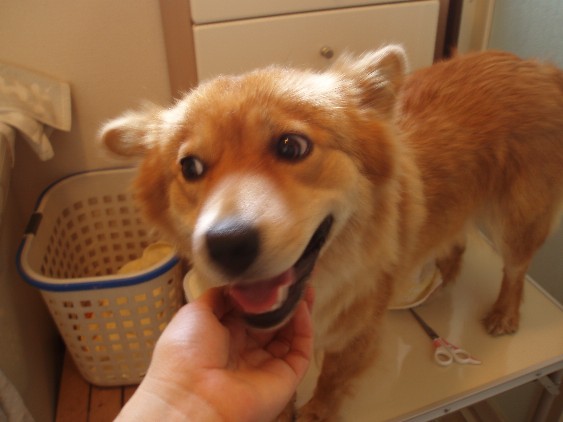 シャンプー後は少し時間がたってからごほうびのオヤツ。
