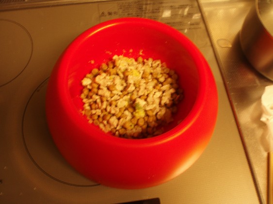 豚ロース(脂身はずしたもの)と白菜。それに5~6カケナチュラルチーズをまぜてあげましたv