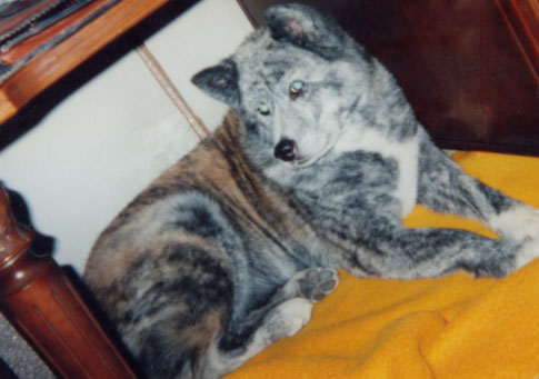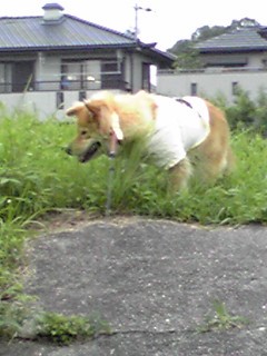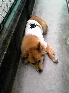 このコは最初外犬だったのですが、雷がどうにもダメで、それ以来室内犬に・・・(^^;