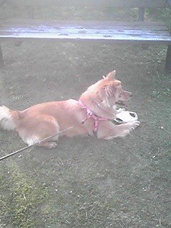 レインコート着せましたが、散歩してるときはほとんど雨降らず・・・。