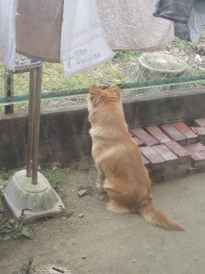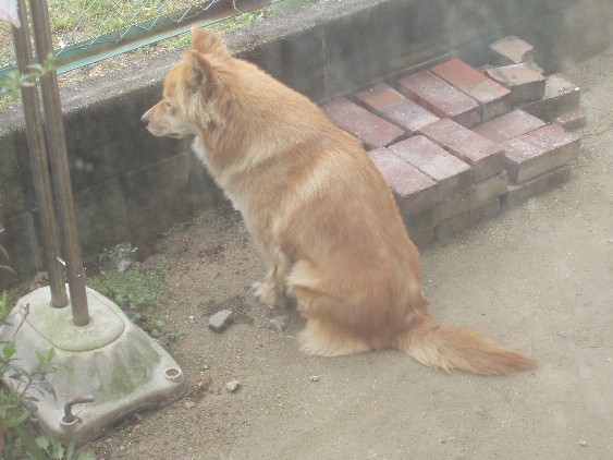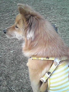 いい感じだけど、リードを持つ私の手が映ってる・・・